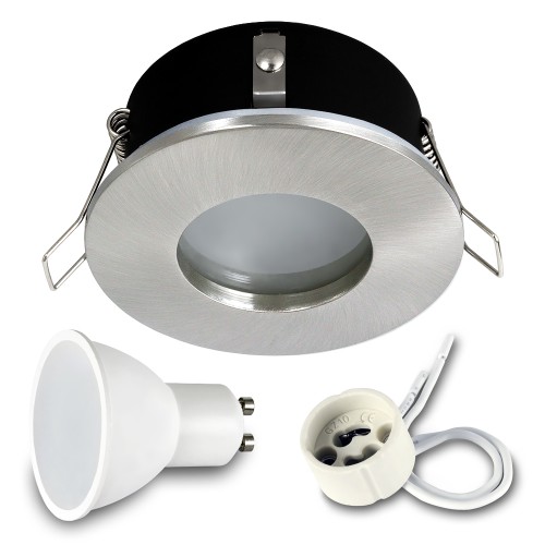 KOMPLET OŚWIETLENIOWY: oprawa IP44, inox, żarówka SMD LED GU10 7W 4000K, oprawka do żarówki GU10.