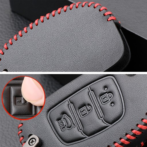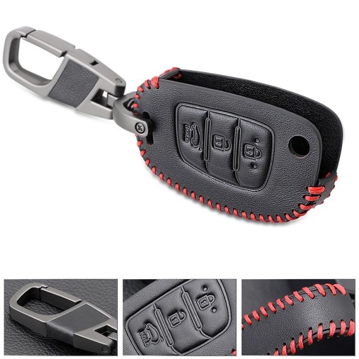 W ofercie posiadamy ręcznie szyte etui, odpowiadające kluczykom wszystkich marek i modeli samochodów osobowych i nie tylko. Kluczyki zostały wykonane z naturalnej skóry w kolorze czarnym, obszywanej grubą, czerwoną nicią.Do każdego etui przymocowany jest praktyczny stalowy karabińczyk, lakierowany na tytanowy kolor.