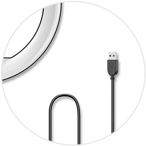 Lampa ring Apexel jest zasilana poprzez kabel USB. Źródłem zasilania może być adapter podłączony do sieci (brak w zestawie), komputer oraz każde inne urządzenie z gniazdem USB.