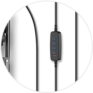 Na kablu zasilającym został zamontowany kontroler, z poziomu którego możemy włączyć lampę ring, zmienić jasność, a także tryb światła.