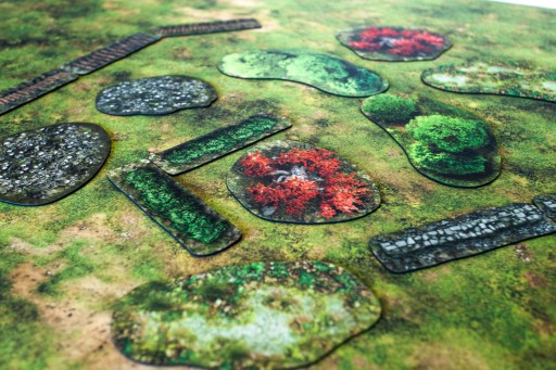 Wysokiej jakości zestaw gumowych terenów 2D z antypoślizgową powierzchnią. Łączy w sobie funkcjonalność klasycznych terenów oraz komfort stawiania figurek na płaskich powierzchniach.