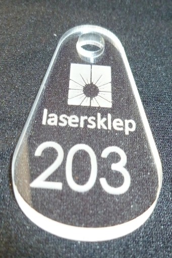 - Brelok wykonujemy techniką grawerowania laserowego na wysokiej jakości pleksi (szkło akrylowe) grubości 3 mm