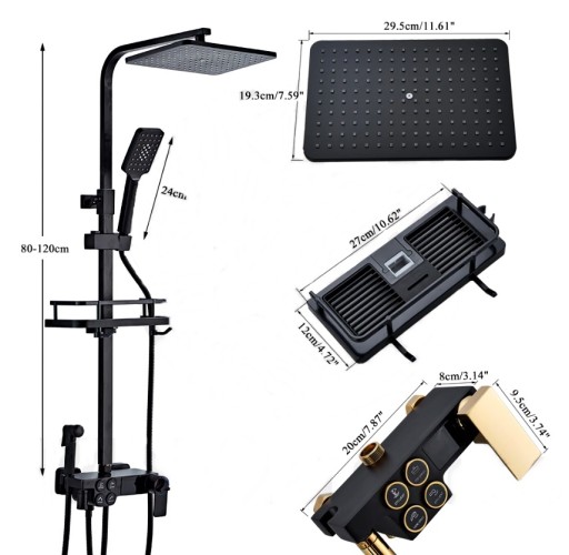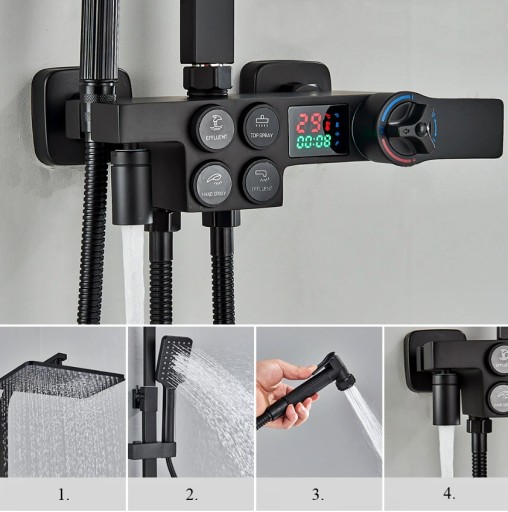 Luksusowy zestaw prysznicowy 8'' - 20 cm w kolorze CZARNY MAT