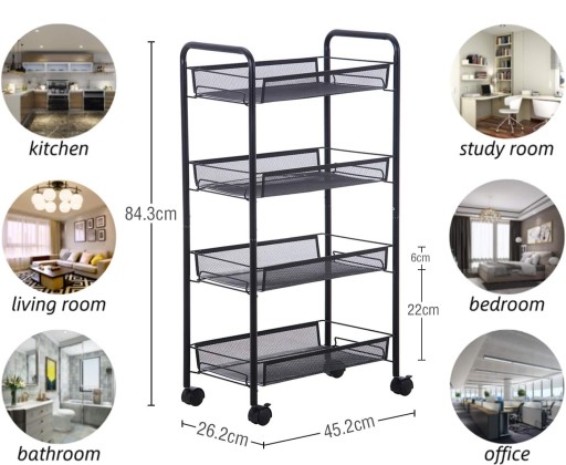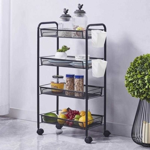 Koniec z bałaganem! Praktyczna czteropoziomowa półka na kółkach. Sprawdzi się świetnie zarówno w domu jak i warsztacie. Można przechowywać w nich rzeczy kuchenne, łazienkowe, a także drobne akcesoria. Dzięki uniwersalnemu designowi sprawdzi się świetnie w każdym wnętrzu.