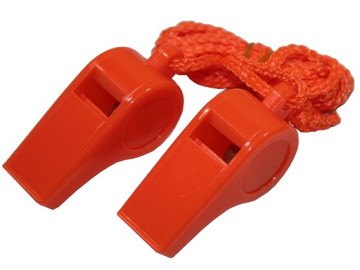 Gwizdeki ratunkowe na sznurku, w kolorze fluorescencyjnym. Wykonany z tworzywa sztucznego.
