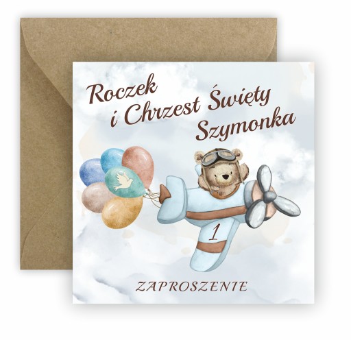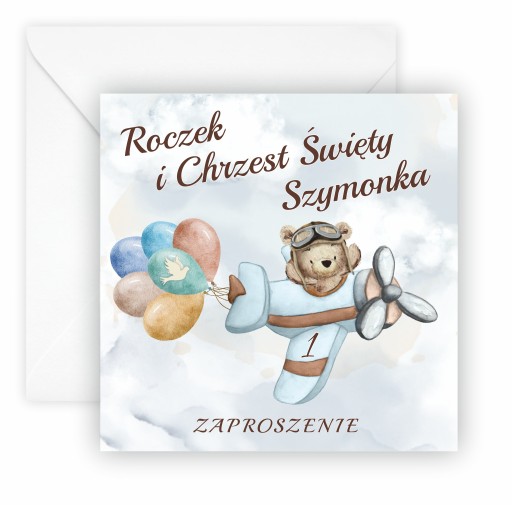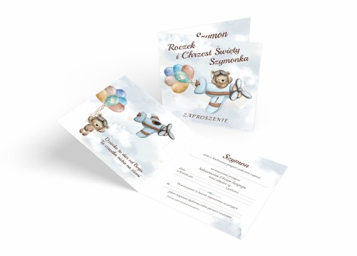 ZAPROSZENIA NA ROCZEK I CHRZEST ŚWIĘTY Z MOTYWEM BOHO MISIA W SAMOLOCIE