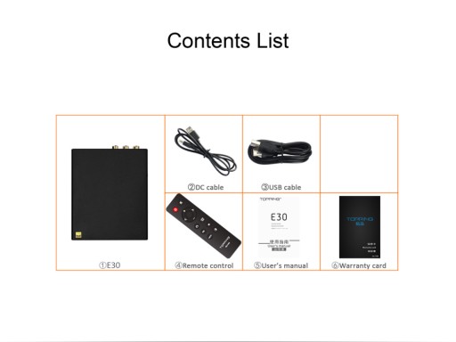 Topping E30 przetwornik cyfrowo-analogowy o kompaktowych rozmiarach. Obsługujący na wejściu USB sygnał PCM do 32 Bitów/768 kHz oraz do DSD512. Ma wszystkie popularne wejścia cyfrowe jak USB, optyczne, coaxial.