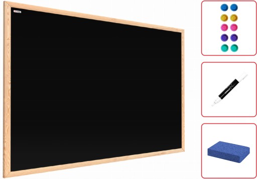 - Wysoka jakość - tablica wykonana jest z wysokiej jakości magnetyczno-kredowej blachy. Całość zamknięta jest w eleganckiej, naturalnej, drewnianej ramie. Gwarantuje to stabilność całej konstrukcji i odporność na uszkodzenia.