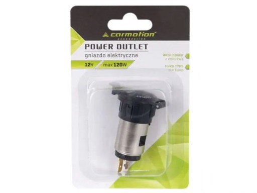 Gniazdo zapalniczki charakteryzujące się odporną, metalową konstrukcją. Gniazdo zamykane za pomocą plastikowej pokrywki.