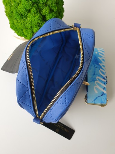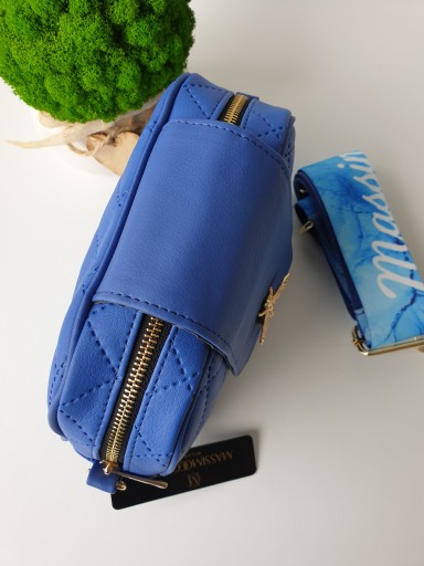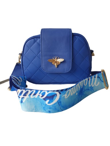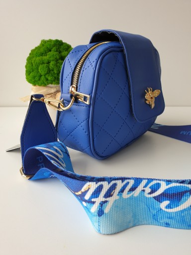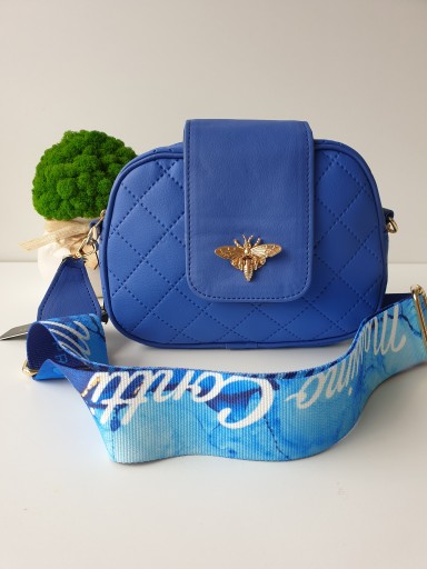 Torebka, listonoszka wykonana z wysokiej jakości delikatnej pikowanej skóry ekologicznej w kolorze chabrowym.