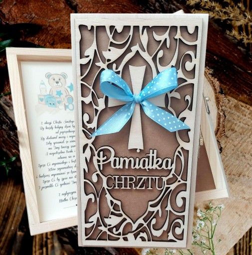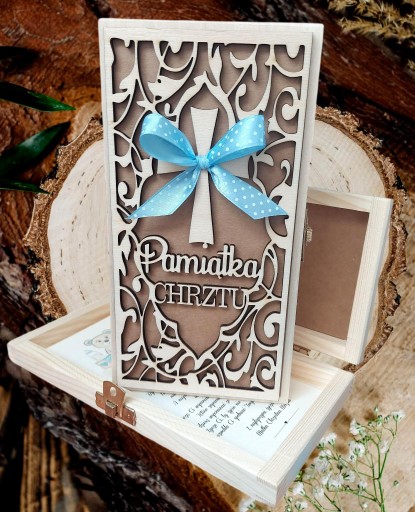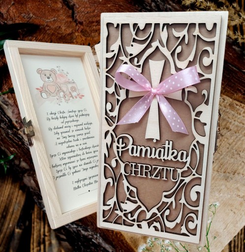Rustykalna Pamiątka Chrztu 2 kolory PREZENT