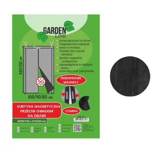 Kurtyna magnetyczna do umieszczenia w świetle drzwi. Samozamykająca, na magnes. Chroni przed wnikaniem do pomieszczenia wszelkiego rodzaju owadów latających, w tym komarów i much.