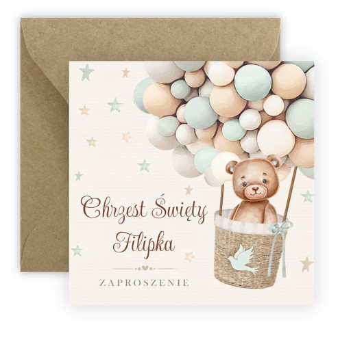 ПРИГЛАШЕНИЯ НА КРЕЩЕНИЕ + ИМЯ + КОНВЕРТ плюшевый мишка в стиле бохо