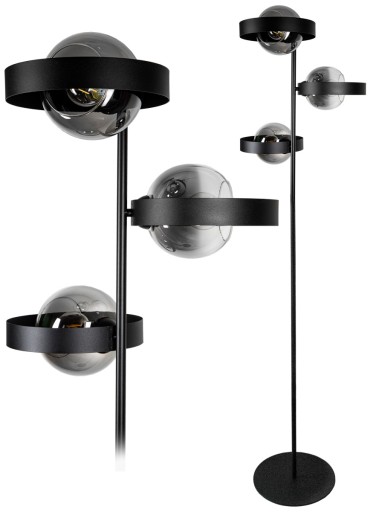 Nowoczesna lampa podłogowa w nowoczesnym stylu z trzema szklanymi kloszami to rodzina lamp wykonana z najwyższej jakości komponentów. Jest uzupełnieniem rodziny lamp sufitowych.