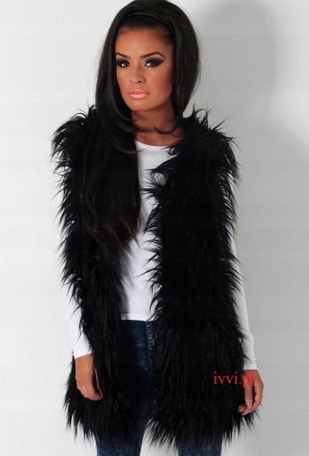 Kamizelka wykonana jest ze sztucznego futerka. Klasyczny, prosty fason. Zapinana na haftkę. Milutka i cieplutka. Po bokach kamizelki kieszonki