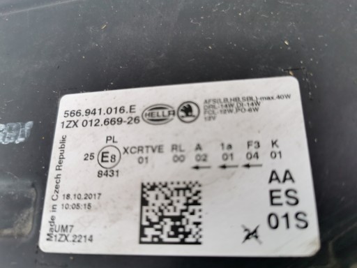 Лампа передняя правая полностью светодиодная Skoda Kodiaq 566941016