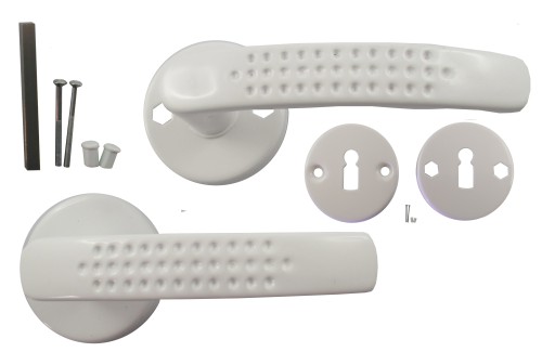 - klamka z okrągłym szyldem (na obie strony drzwi)