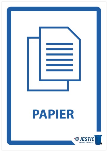 Wysokiej jakości laminowana naklejka na kosz do segregacji odpadów z przeznaczeniem na frakcje PAPIEROWE.