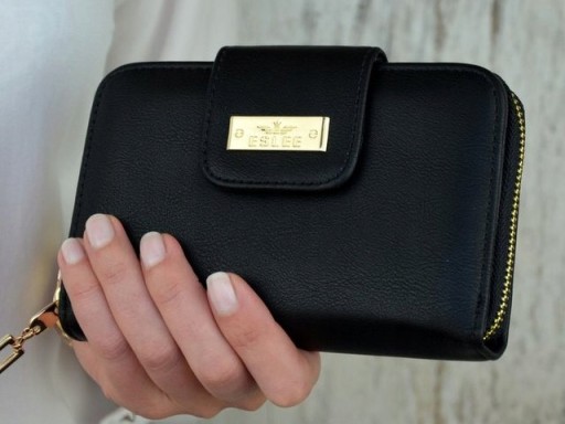 Portfel wykonany z wysokiej jakości ekoskóry zamykany na zamek błyskawiczny oraz zatrzask