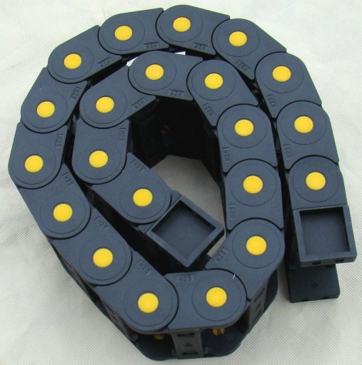 Wysokiej jakości prowadnik kabli z żółtymi zatyczkami.