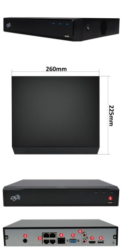 - 3. Gniazdo RJ45 - port do wpięcia kamer
