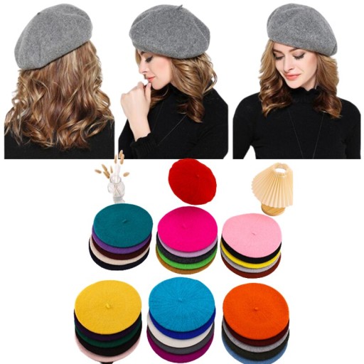 ЖЕНСКИЙ ФРАНЦУЗСКИЙ ШЕРСТЯНОЙ БЕРЕТ С АНТЕННОЙ ПРЕМИУМ