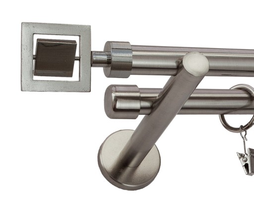 Wspornik karnisza o średnicy rurki fi 16+16 wykonany jest z metalu, pokrytego powłoką galwaniczną oraz dodatkową warstwą utwardzonego lakieru, która zapewnia doskonałą ochronę powierzchni przed ścieraniem.