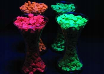Dekoracyjne barwione kamienie Fluorescencyjne świecące pod światłem UV .
