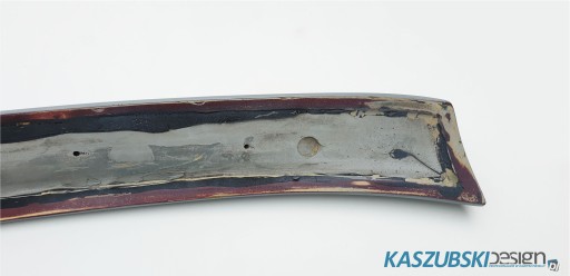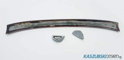 Spoiler cały, ale do poprawek lakierniczych. Przypuszczam, że był polakierowany zwykłym podkładem w sprayu bez przygotowania w postaci podkładu do plastiku lub po prostu źle wyczyszczony - lakier popękał co doskonale widać na zdjęciach. Sam spoiler cały, nie jest usszkodzony. Wykonany z materiału PUR. W 100% oryginalny.