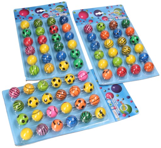 Małe kauczukowe piłeczki w przeróżnych wzorach i kolorach.