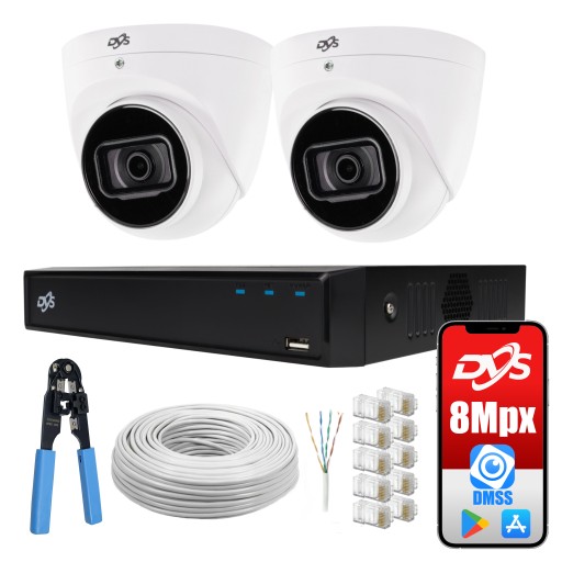 Niezawodny zestaw renomowanego producenta Dahua dla DVS Polska do samodzielnego montażu z dwoma kopułkowymi kamerami, obsługującymi rozdzielczość 8Mpx UltraHD 4K 3840x2160p.