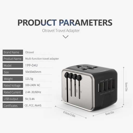 Universal: This global travel adapter comes with UK (Type G)/US (Type A/B)/AUS (Type I)/EU (Type C/F) four different specifications of plugs and 4 USB charging ports, it It can be used in more than 200 countries/regions such as the United States, Canada, the United Kingdom, Europe, China, and Japan.