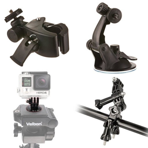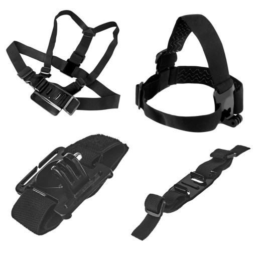- Imponujący, kompleksowy zestaw uniwersalnych akcesoriów pasujących do większości dostępnych na rynku kamer sportowych