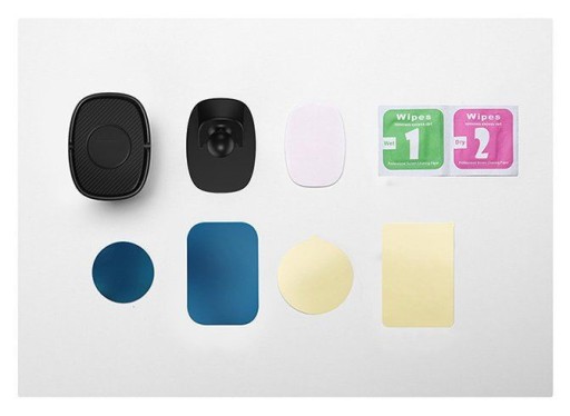 By móc korzystać z akcesorium, należy przykleić do etui (lub obudowy telefonu) jedną z dołączonych metalowych płytek. Obie nakładki zostały wyposażone w samoprzylepną taśmę ułatwiającą montaż.