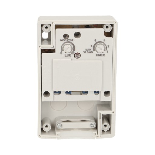 - Czas załączenia światła przez czujnik można regulować w zakresie od około 1 do 8 godzin lub od zmierzchu do świtu (dusk to dawn). Jeżeli pokrętło będzie ustawione w trybie DUSK TO DAWN, przełącznik zmierzchowy przestawi się na zwykłą funkcję a funkcja czasowa zostanie wyłączona.
