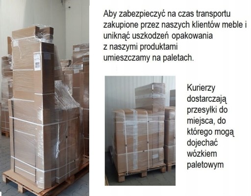 Ława jest dostarczana w trzech paczkach umieszczonych na palecie. W jednej znajduje się zmontowany kompletny blat, do którego należy przykręcić cztery nogi i podstawę.