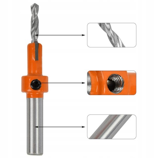 Wiertła do fazowania w drewnie posiadają możliwość regulowania głębokości odwiertu poprzez poluzowanie śruby, ustawienie wiertła/głębokości i dokręcenie z powrotem śruby (za pomocą dołączonych do zestawu imbusów)
