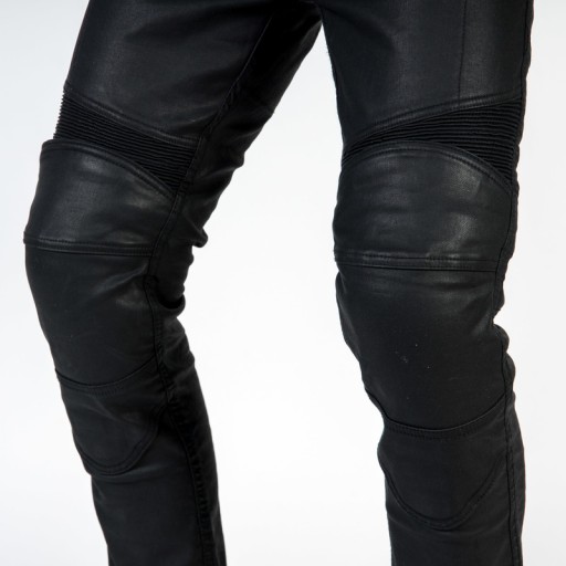 Bezpieczeństwo motocyklisty w razie upadku zapewniają wspomniane powyżej certyfikowane protektory kolan umieszczone w łatwo dostępnych kieszeniach. Co ważne dostęp do protektorów zapewniają zewnętrzne ekspresy (ukryte pod patkami), co umożliwia ich bezproblemowe i szybkie wyjęcie bez potrzeby zdejmowania spodni np. po dojechaniu do pracy.