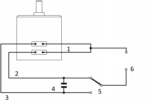 Podłączenie z kondensatorem i zasilaniem ukazuje poniższy rysunek: