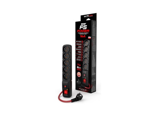 LISTWA ZASILAJĄCA ACAR F5 POWER 3M 5X 230V PL CZARNA 16A