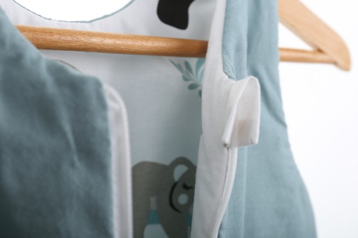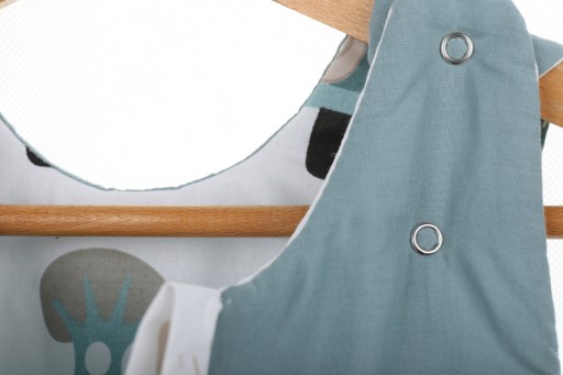 - Na ramionkach śpiworek zapina się na dwie napy, dzięki temu może on „rosnąć razem z dzieckiem” i posłużyć naprawdę na dłuuugo.