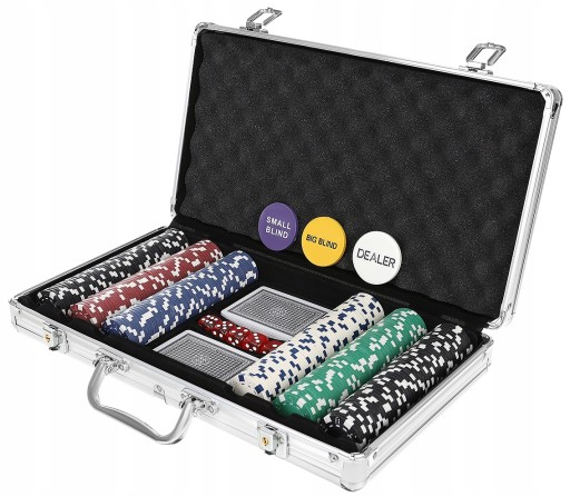Zestaw do Pokera 300 Żetonów Texas + Walizka. Elegancki aluminiowy kuferek/walizka na 300 żetonów do gry i akcesoria! Idealnie nadaje się do gry w pokera i inne gry np. kości, ruletkę lub black jacka.