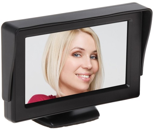 Monitor samochodowy o przekątnej ekranu 4.3" z możliwością podłączenia dwóch źródeł sygnału wideo np. kamery cofania i przenośnego DVD