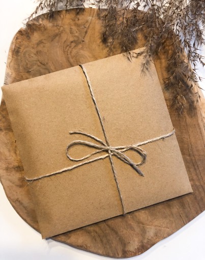 Do każdej kartki dodajemy szarą kopertę związaną sznurkiem.
