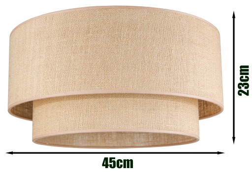 Abażur lampy wykonany jest z tkanego materiału. Materiał zewnętrzny wykonany jest z plecionego jutowego materiału, wewnętrzny to materiał PCV w bezbarwnym kolorze.
