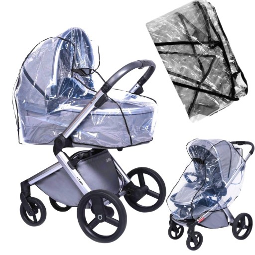 Uniwersalny, wyprodukowany w POLSCE pokrowiec przeciwdeszczowy na cały wózek zabezpieczający dziecko przed deszczem i nieprzyjemnym zimnem.