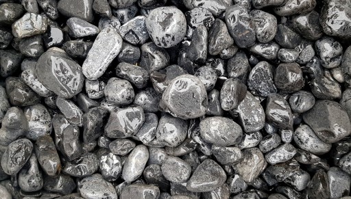 - Suchy otoczak ma kolor grafitowy, w momencie kontaktu z wodą lub impregnatem kamień staje się czarny.