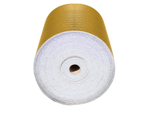 Trójwarstwowy, cienkościenny ekran termoizolacyjny wykonany z pianki polietylenowej o zamkniętej strukturze komórkowej, obustronnie pokrytej wysokoefektywną, refleksyjną złotą folią metalizowaną.