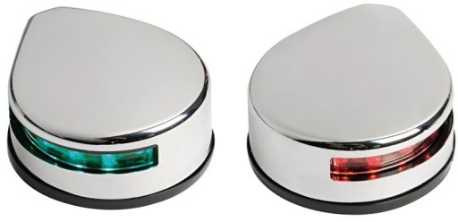Komplet lamp nawigacyjnych burtowych LED w oprawie wykonanej ze stali nierdzewnej, 112,5º przeznaczone do łodzi o długości do 12 m. Światło zielone i czerwone, umieszczone w wodoszczelnej i niekorodującej oprawie.