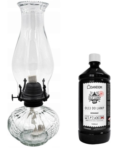 TRADYCYJNA LAMPA NAFTOWA Z BAWEŁNIANYM KNOTEM RETRO + POLSKI OLEJ DO LAMP NAFTOWYCH 1000 ml. + KNOT DO LAMP 50 cm.